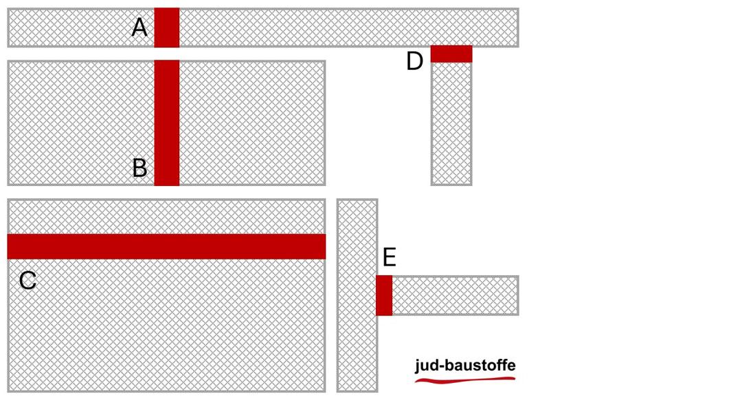 Der Anwendungsbereich und nicht der Prüfbereich bestimmt, in welchen Situationen man ein Produkt verwenden kann. Der Anwendungsbereich kann nämlich grösser sein als der Prüfbereich. Dies sieht man am Beispiel der Brandschutzfugen (EN1366-4:2021): Mögliche prüfbare Ausrichtungen sind A, B und D. Mögliche Anwendungen sind aber A, B, C, D und E.
